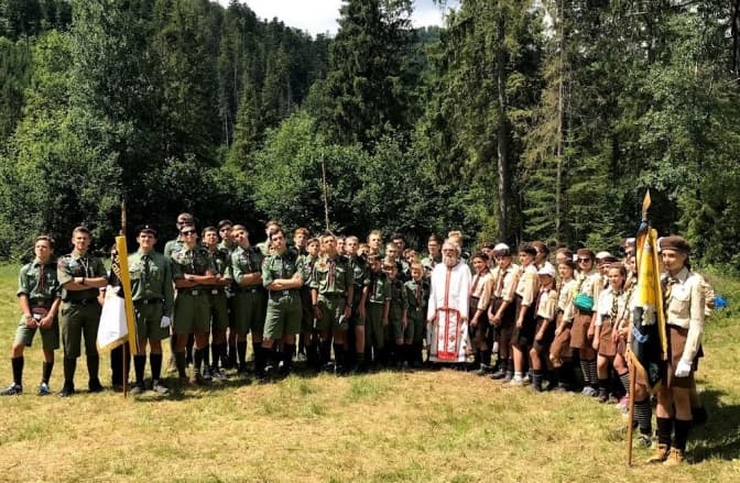 О. Михайло Димид та владика Борис Ґудзяк, члени пластового куреня «Хрестоносці»