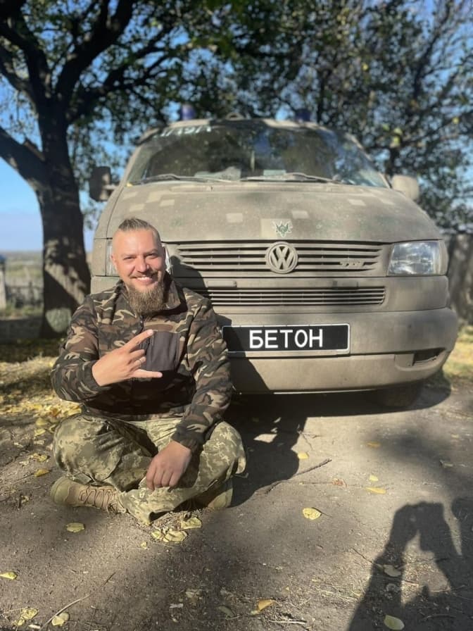 «Я гітарист і вокаліст групи, яка грає панк-рок. Коли йшов на службу, то одразу, без сумнівів попросив дозволу пацанів з групи взяти собі «Бетон» як позивний. Тепер навіть номери моєї машини швидкої допомоги – БЕТОН, – розповідає він. – Із цим псевдо уже були різні історії. Хлопці з інших бригад навіть прибігали брати автограф і фотографуватися, бо почули «Бетон» і одразу такі: «Я альбом цього гурту в машині слухаю»! А інші їм відповідали: «Тут, до слова, гітарист «Бетону» служить».