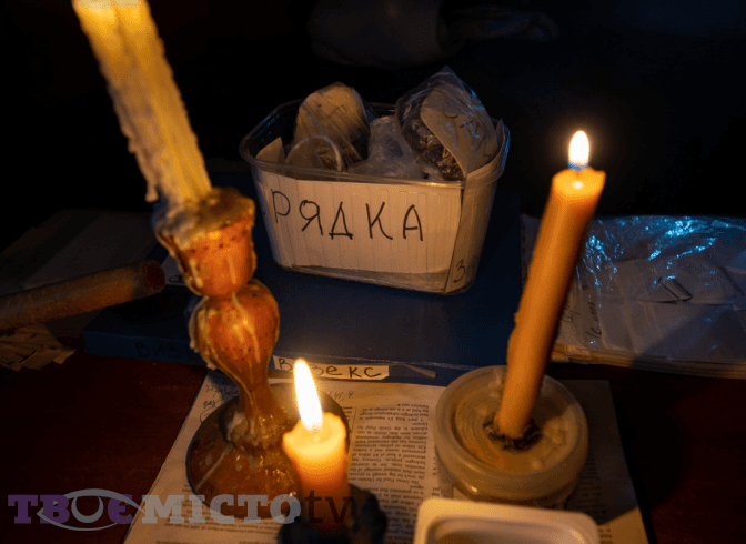 Із Маєю Анатоліївною зустрічаємося в той час, коли на їхній вулиці знову вимкнули світло. На годиннику 16-та, а в квартирі, де пластикові білі двері та вікна закриті пелюшками і цератою, аби не дуло, з кожною хвилиною стає темніше. Заходимо, і Мая Анатоліївна прямує до свічок. Запалює одразу три. Каже, що така розкіш лише для гостей. Для себе світить одну і то не завжди. Економить.