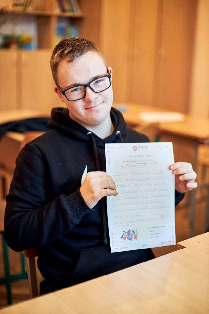 Деякі листи вона тримає на згадку. Серед них лист від 13-річного хлопця: «Святий Миколаю, я новенький у цій школі, але мені тут дуже подобається. Цього року хочу телефон, колонку та смартгодинник. Знаю, що це забагато, тому хочу худі, зимові черевики – і досить. А замість солодощів зроби, будь ласка, подарунки нашим захисникам. А саме: тепловізори – 10 штук, дрони – 10 штук, бронежилети – 40 штук, шоломи – 40 штук, аптечки – 32 штуки, тепле взуття і куртки. Іншого не хочу».