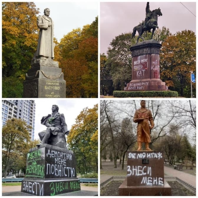 Тепер щодо пам’ятників, які так чи інакше пов’язані саме з російською імперією або ж її совєцькою версією – Щорсу, Пушкіну, Ватутіну, Чкалову і так далі. Вони все ще залишаються на своїх постаментах і виглядає так, що це складніше зробити, аніж навіть у Харкові, в інших містах, де більшість у міських радах донедавна вважалася проросійською або недостатньо проукраїнською. В чому проблема? Хто гальмує цей процес – КМДА чи Міністерство культури?