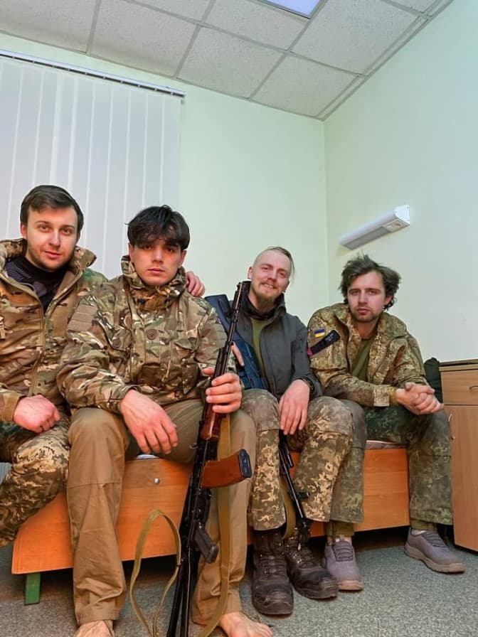 Почав шукати можливості вклинитися в ті чи інші процеси, але відчував внутрішню важкість, бо не міг знайти себе у волонтерстві, знаючи, що я – воїн, маю досвід, маю сили. Постійно думав: хто, як не ми, не наше середовище? Я почав підіймати контакти, колишні співробітники почали приїжджати, ми координували певні процеси. І тут я дізнаюсь, що з Бразилії приїжджає «Курка» – Артем Димид. Ми сконтактувалися, і 1 березня зранку я вже був у нього. Випили каву, він познайомив мене зі своєю мамою пані Іванкою, з молодшою сестрою, і я йому запропонував на місяць залишитися у Львові, щоб проводити тренінги, сформувати свою групу. Артем не погодився. Він сказав: «Ні, столиця може впасти, я їду».