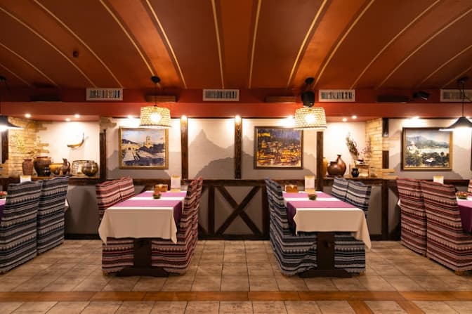 Ресторан грузинської кухні по буднях пропонує комплексні обіди за 187 гривень. У меню входить три страви, які змінюються протягом тижня. Наприклад, в понеділок заклад пропонує пообідати харчо, салатом Тбіліським та Хачапурі. А у вівторок бульйоном з куркою, чхінті лобіо та чашушулі.