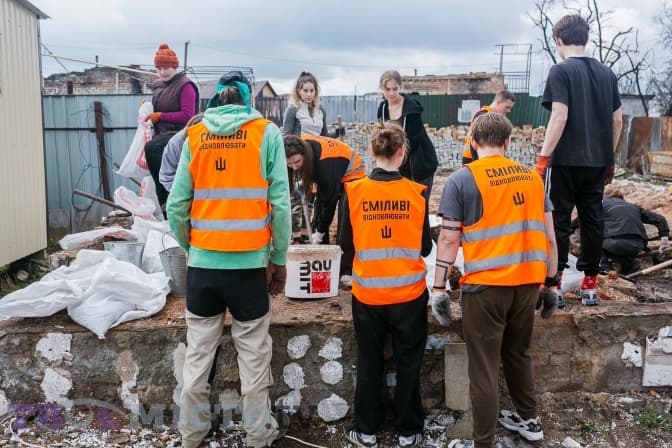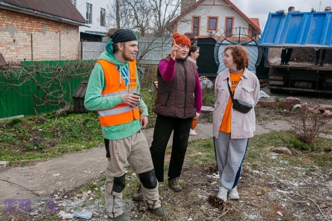 Віталію Селику та Альоні Крицук у кінці травня вдалося зібрати команду волонтерів «Сміливі відновлювати». Спершу вона допомагала розбирати завали в Бучі, та вирішила не зупинятися на цьому.