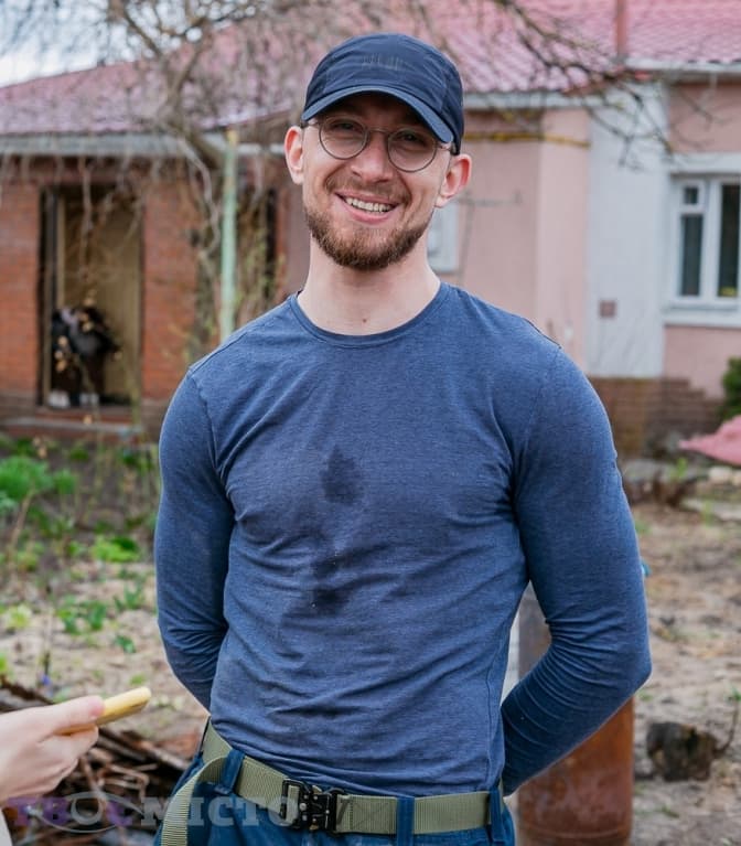 «Приїхав сюди, щоби волонтерити, – усміхається. – По вихідних працюю з командою «Сміливих», а по буднях – із «Добробатом». Тут ми розбираємо завали, а там зводимо стіни, робимо дахи. Ніхто не має проходити через це сам. Якби це була моя сім’я, я би теж хотів, щоби мені хтось допоміг».