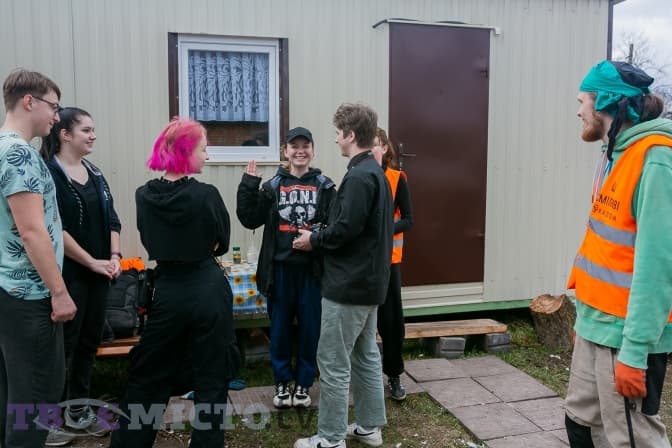 На годиннику дев’ята ранку, неділя. Біля хлібного кіоску на станції метро «Академмістечко» збирається молодь. Дехто в яскравих помаранчевих футболках із написом «Сміливі відновлювати». Хлопці й дівчата щось жваво обговорюють. Рудоволоса дівчина приносить з десяток білих мішків і лопат. Це Дарія Галайда, координаторка волонтерів по неділях.