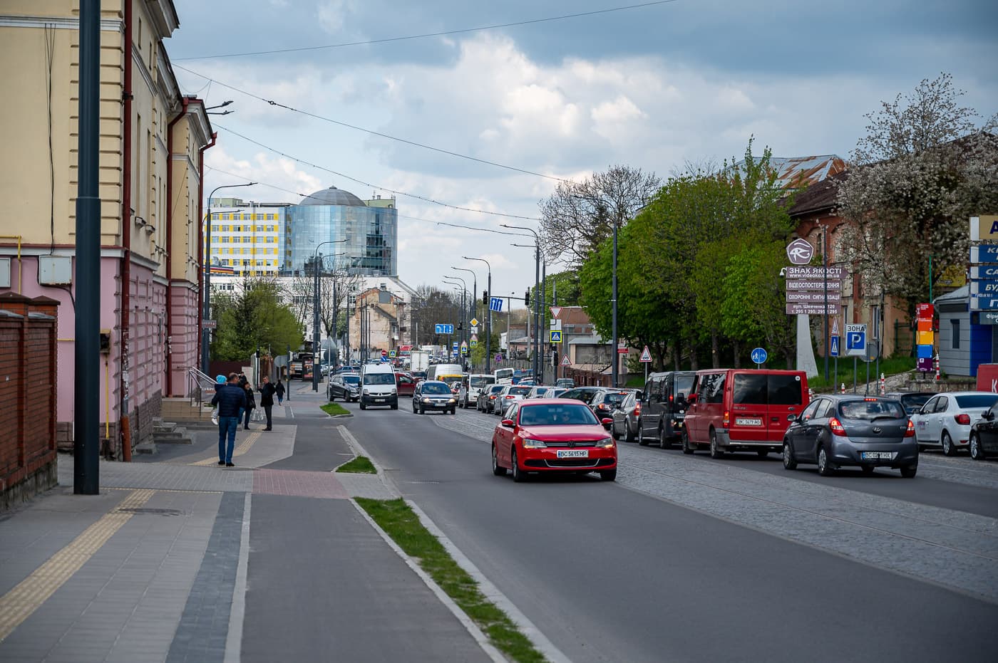 «Для прикладу, цей будинок виходить за межі проєкту і має нерівний фасад. Спершу ми планували висадити тут шість дерев, але фахівці з управління екології проаналізували ситуацію, врахували те, що дерева ростимуть зі східного боку, де після 12 години сонця не буде видно, тому й підібрали дерева, які не потребують багато сонця. В підсумку вирішили посадити два граби породи «Лукас» і кущі», – розповідає він. На іншій ділянці дороги Ігор Антахович показує реконструйовану вулицю з простором для висаджування дерев, що розташований між двома смугами проїжджої частини. Каже, тут планували висадити два ряди дерев у шаховому порядку, однак передумали.