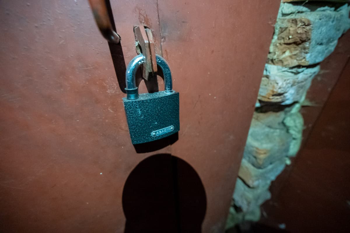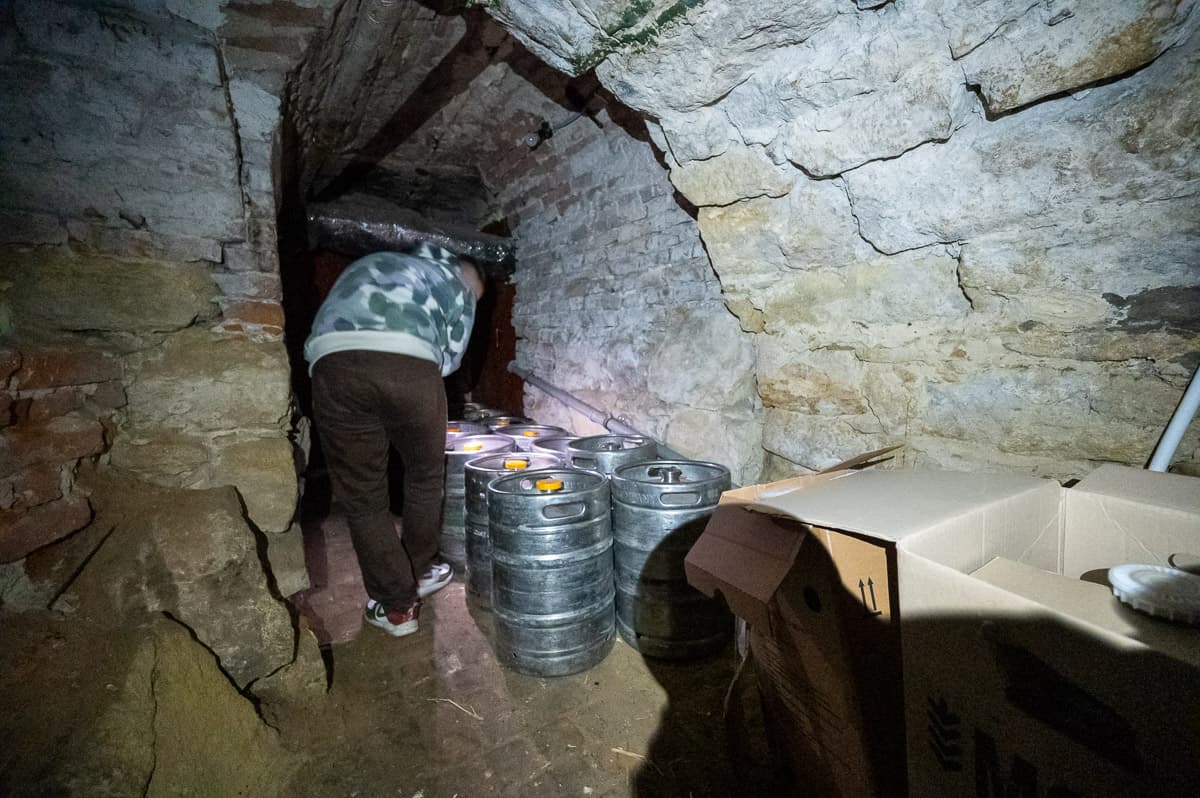 Ще одне укриття – на Валовій, 19, в яке ми воліли зайти, було відчинене, доступне для огляду, але вразило нас ще більше, аніж неможливість потрапити до першого укриття: короткий коридорчик у катакомбах висотою з метр, наполовину заповнений металевими діжками із сидром, і декілька дверей, на яких висять замки.