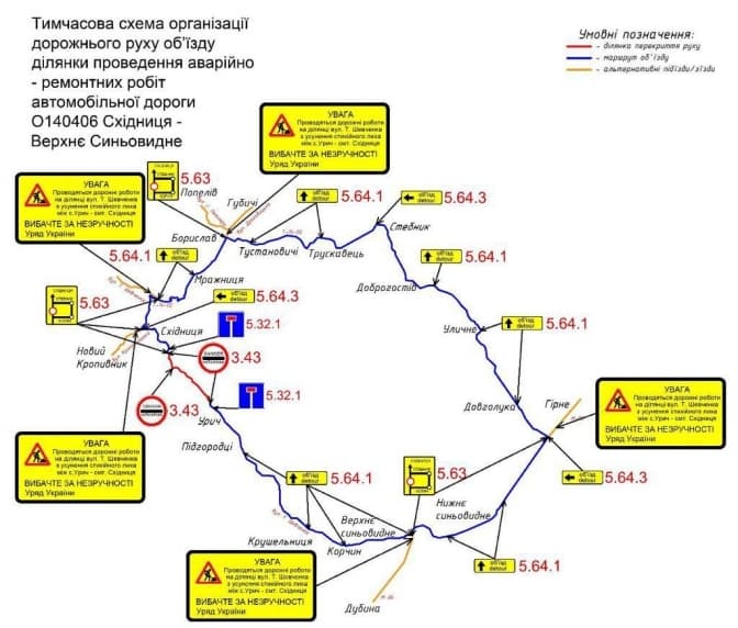 Схема об’їзду дороги Східниця – Верхнє Синьовидне
