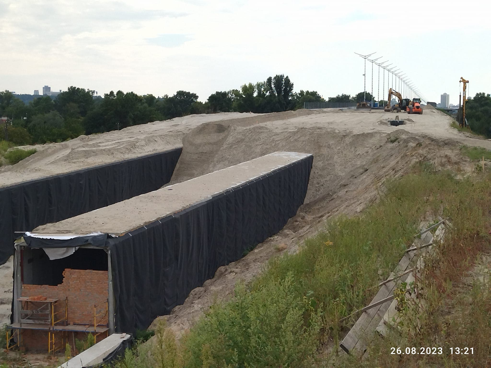 «Станом на сьогодні в основних конструкціях побудований заїзд на Подільський мостовий перехід із Набережно-Хрещатицької в межах вулиці Верхній-Нижній Вал (472 м). Також зведені передбачені для метрополітену: естакада на Рибальському півострові (528 м) та станція метрополітену «Суднобудівна»; лівоповоротний з’їзд з Подільського мостового переходу на вул. Набережно-Рибальську (436 м); міст через річку Дніпро (473 м); естакада на Трухановому острові (990 м) і станція метрополітену «Труханів острів»; міст через затоку Десенка (304 м); естакада в урочищі Горбачиха (710 м) та станція метрополітену «Затока Десенка». Довжина суміщеної з мостовим переходом траси метрополітену становить 4,9 км, з яких 2,9 км збудовані в основних конструкціях», – повідомили в Дептрансі.