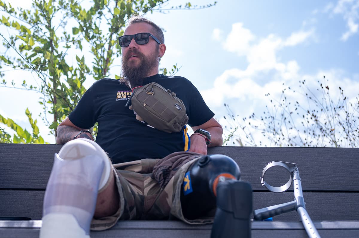 Одну ногу бійцю ампутували до коліна, другу – вище. Зараз у нього дві різні конструкції: ліва більш постійна, з електронним коліном, а права – куксоприймач, який треба замінювати.