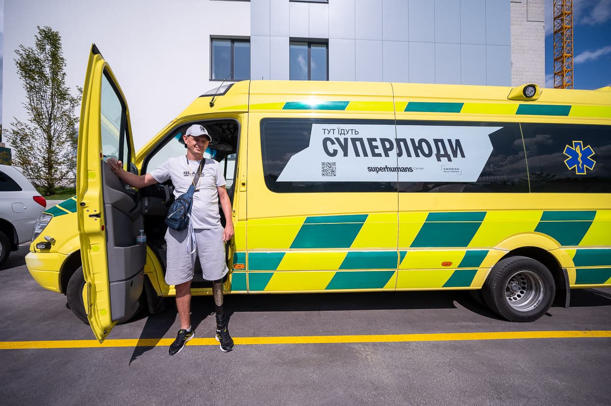 Через війну та мобілізацію в клініці не вистачає чоловіків, які могли б допомагати відправляти поранених за кордон. Спочатку був пацієнтом, а тепер став водієм у «Superhumans» 38-річний Дмитро із Запоріжжя. Травму і втрату лівої ноги отримав під час бойових дій. Згадувати й розповідати, що тоді сталося, чоловік не хоче.