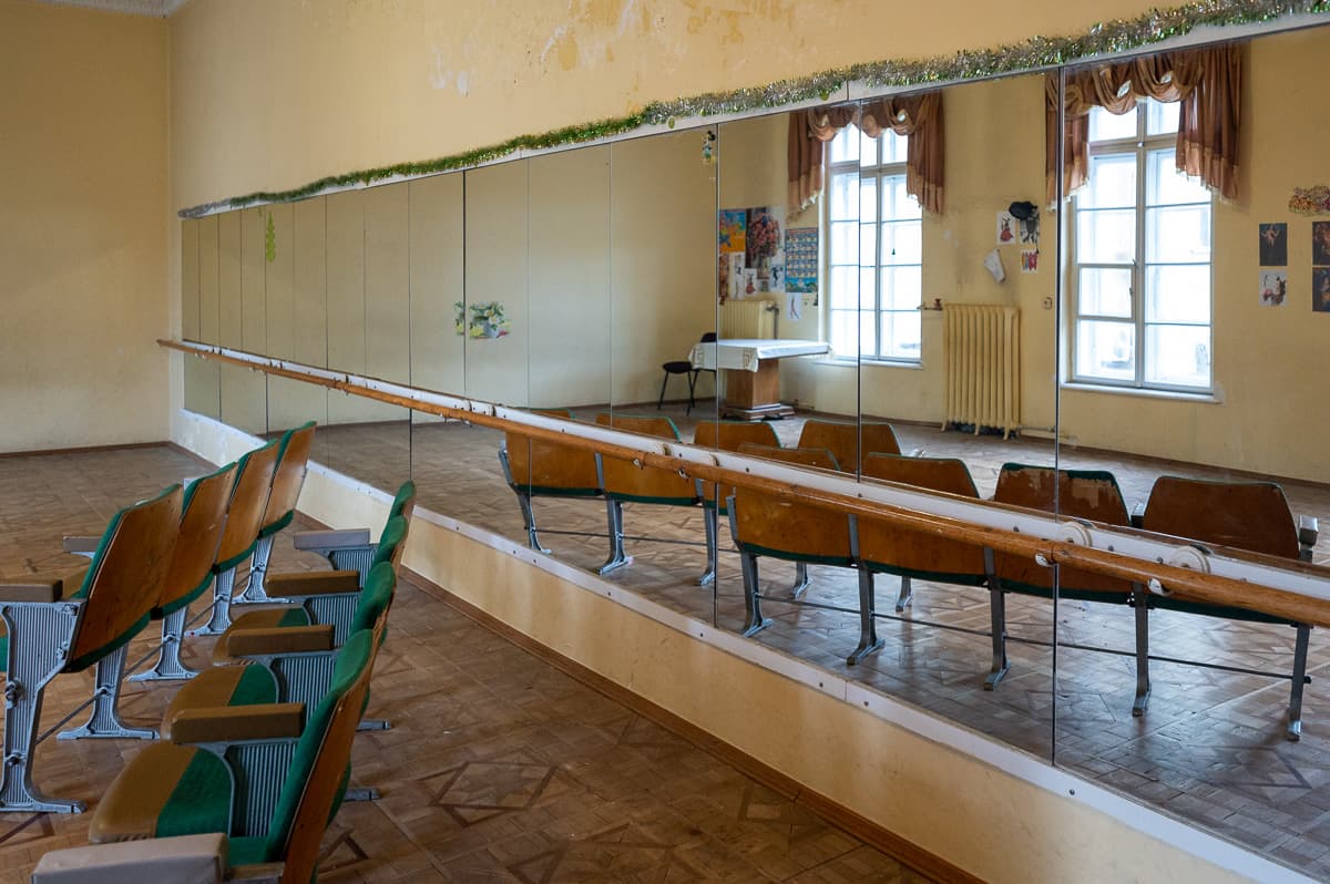 Раніше тут функціонувала дзеркальна зала, яку зачинили через дірявий дах. Його вже відремонтували, однак в аудиторії ще тривають роботи.