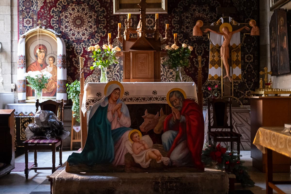 Проте в самому храмі варто очікувати змін. Як каже настоятель, не буде ялинок, церкву прикрасять десятки дідухів та різдвяних павуків, які за давнім повір’ям сховали Святе дитя від злих воїнів.