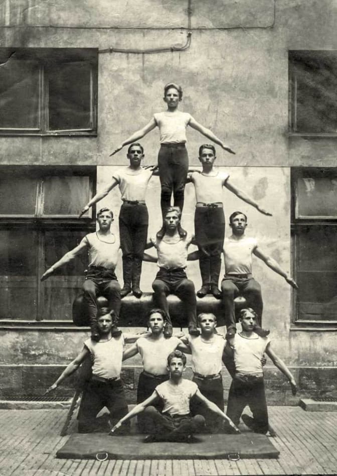 Львівські гімназисти-спортовці. Нагорі піраміди – Роман Шухевич. Львів, 18 жовтня 1922 року