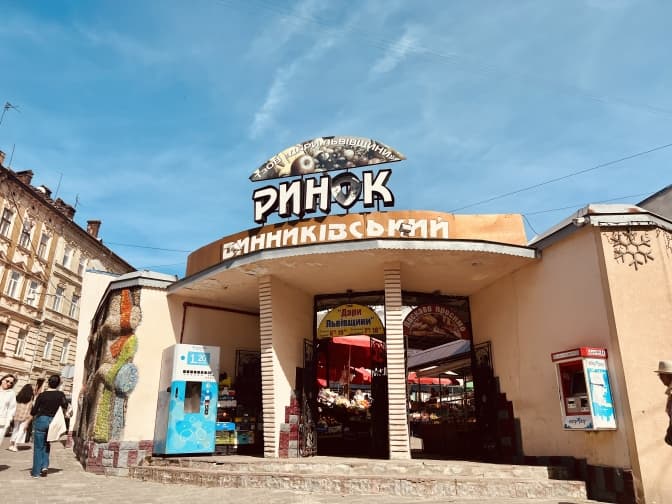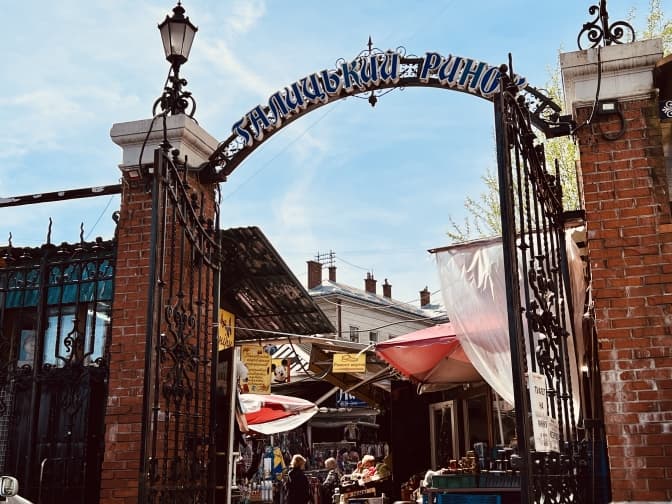 “Туалет на ринку, 30 метрів – зліва”... “Ксерокс”, “Ремонт взуття”, “Сувеніри”– це написи на найдавнішому ринку Львова, розташованого за ворітьми поряд із ТЦ “Роксолана” на пл. Соборній, 16. Тут частково збереглася історична ринкова брама кінця XIX століття.