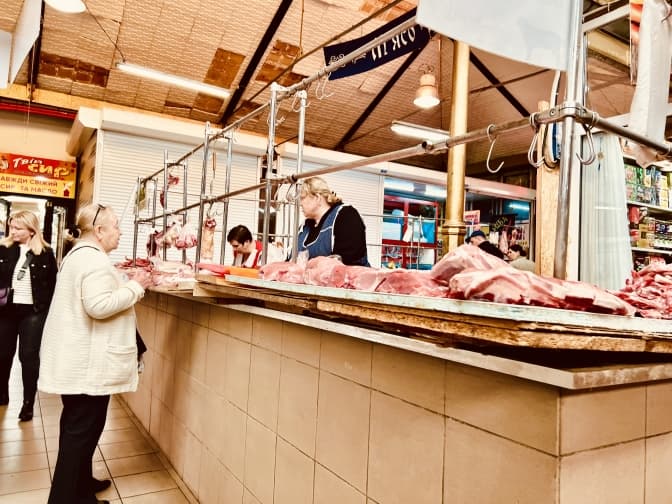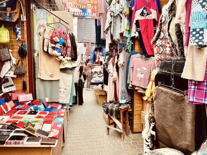 Навколо продуктового відділу є ряди з одягом, посудом, сувенірами, вишивками, капцями – усім, що, в принципі, згодиться для дому. У вузенькому проході жіночки вибирають одяг. Одна з продавчинь каже, що колись, звісно, було більше покупців, але й зараз не бракує. Досі приходять туристи, бо це все-таки центральна частина міста, але переважно заглядають постійні покупці.