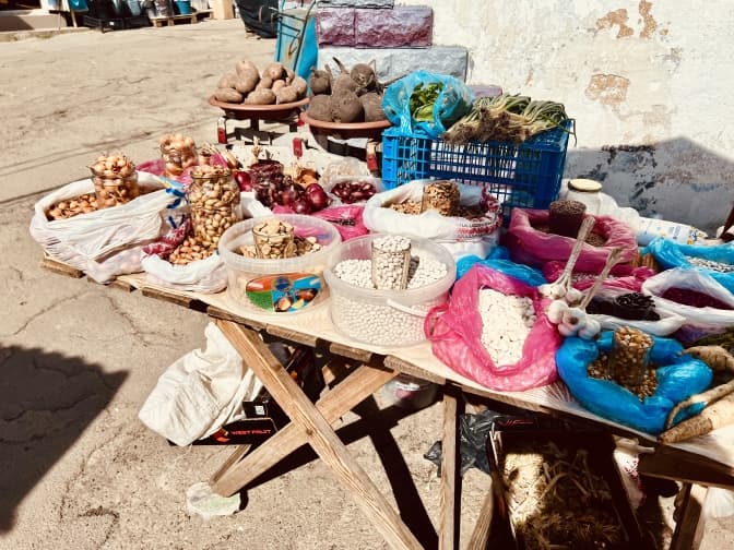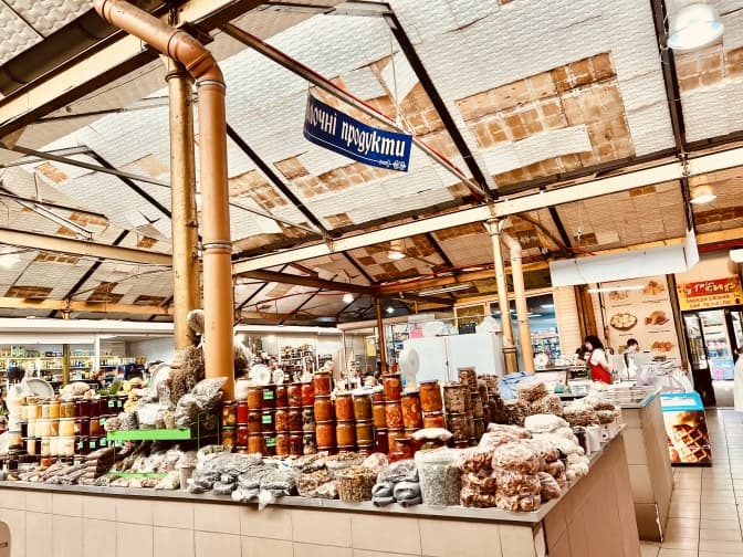 Продавчині біля входу одразу пропонують овочі та фрукти. Тут доволі багато люду. Відвідувачі вітаються – прийшли до своїх продавців. У серцевині базарчика – продуктовий ринок. Тут можна знайти все. Щоправда, близько двох тижнів тому закрився павільйон із крафтовим сиром, яким тут торгували понад десяток років. Окрім м'яса, набілу, цукерок, круп та інших продуктів, на ринку продають різноманітні консервації, варення, сухофрукти, трав’яні чаї, насіння.