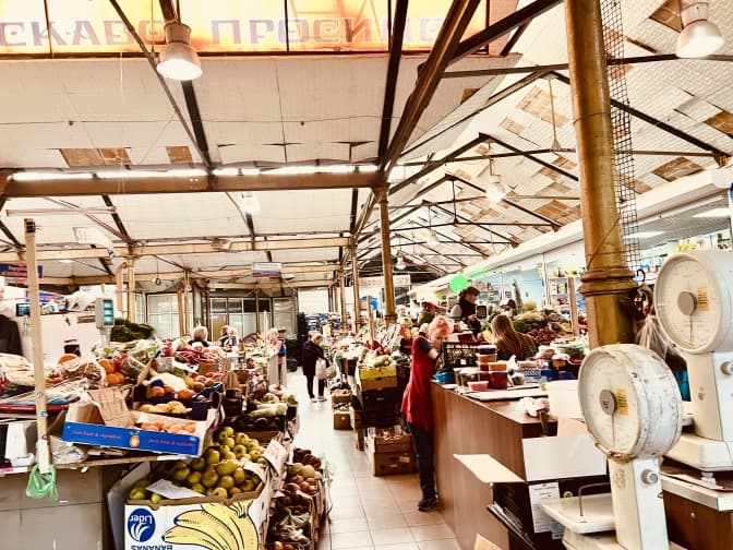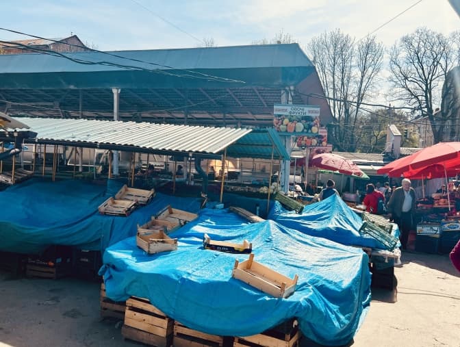 Тепер на ринку більшість крамничок накриті. Деякі не перестають працювати. Коли потрапляєш сюди, ніби повертаєшся в минуле століття. Ціни нижчі, ніж на Галицькому. Бабусі пропонують молоко у півторалітрових пластикових пляшках, квіти, саджанці. Є й м’ясо. Кажуть: “Беріть свіженьку телятинку”, тільки вигляд холодильників вказує на інше…
