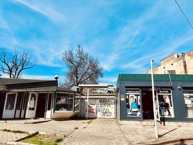 Зовсім інший вигляд мають торгові павільйони – залишки ринку “Добробут”, розташованого в середмісті (на пл. Князя Осмомисла, за оперним театром). Тут досі працюють кілька будок із одягом, технікою тощо. Жінка, яка продає овочі та фрукти, каже, що наразі їм не казали, щоб вони забиралися геть, тому й далі торгує біля паркана, який відділяє площу від ділянки.