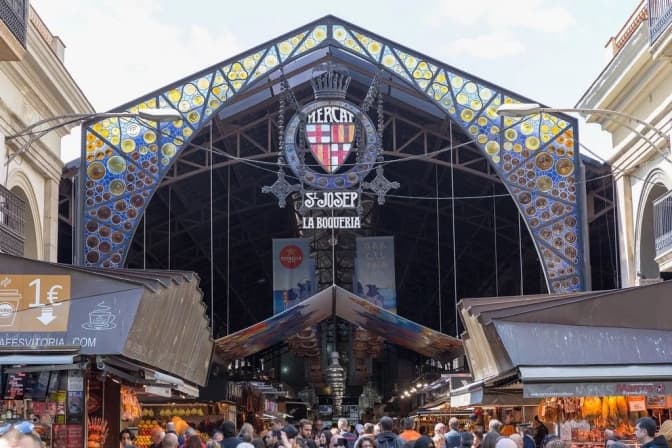 Наприклад, у Барселоні працює відомий ринок Ла-Букарія. Його будівлю спорудили зі скла і сталі, а також прикрасили мозаїкою. Ла-Букарія є найбільш відвідуваним туристами ринком у Каталонії.