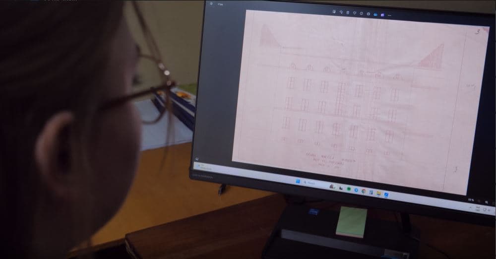Вікторія Нецько відскановує креслення Будинку Шпрехера