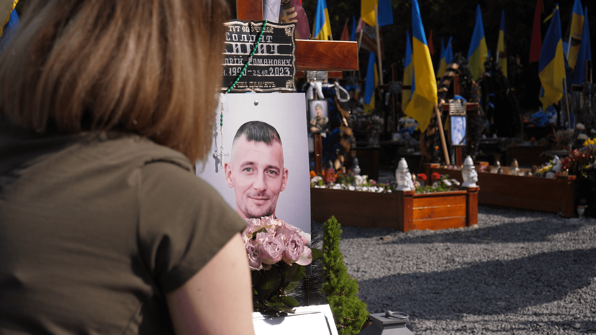 Від могили свого брата Наталя йде далі. Повертає зі стежки ліворуч, де похований її чоловік Андрій Кирич. Коли він загинув, жінка щоранку перед роботою приходила на його могилу випити з ним кави, а ввечері навідувалася, щоб розповісти, як минув її день.