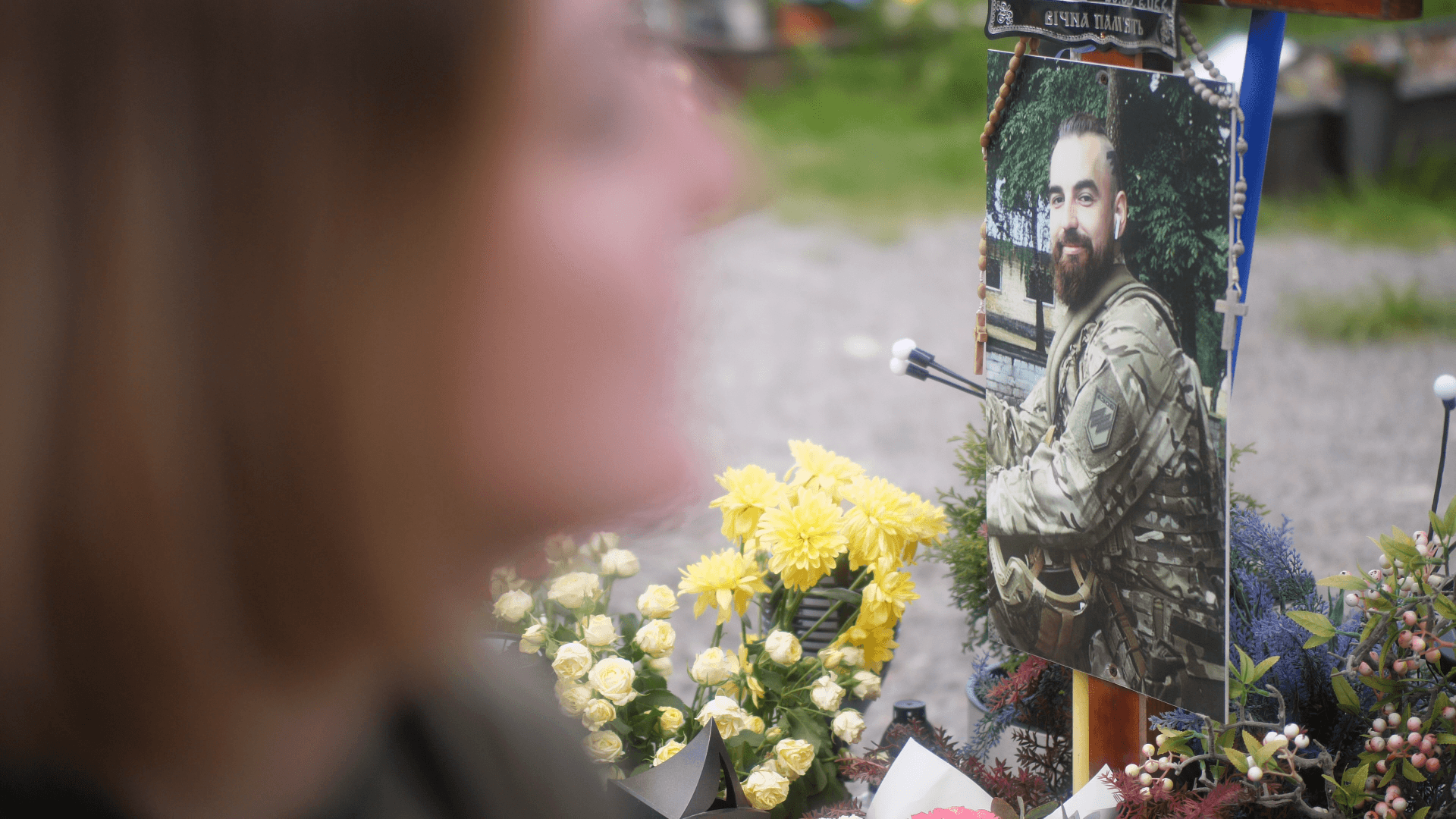 Жінка дивиться на могилу брата, на його фото і пригадує їхнє дитинство. Каже, що Ігор був дуже спокійною, милою дитиною, любив тварин. Тому Наталя була здивована, що він обрав шлях воїна.