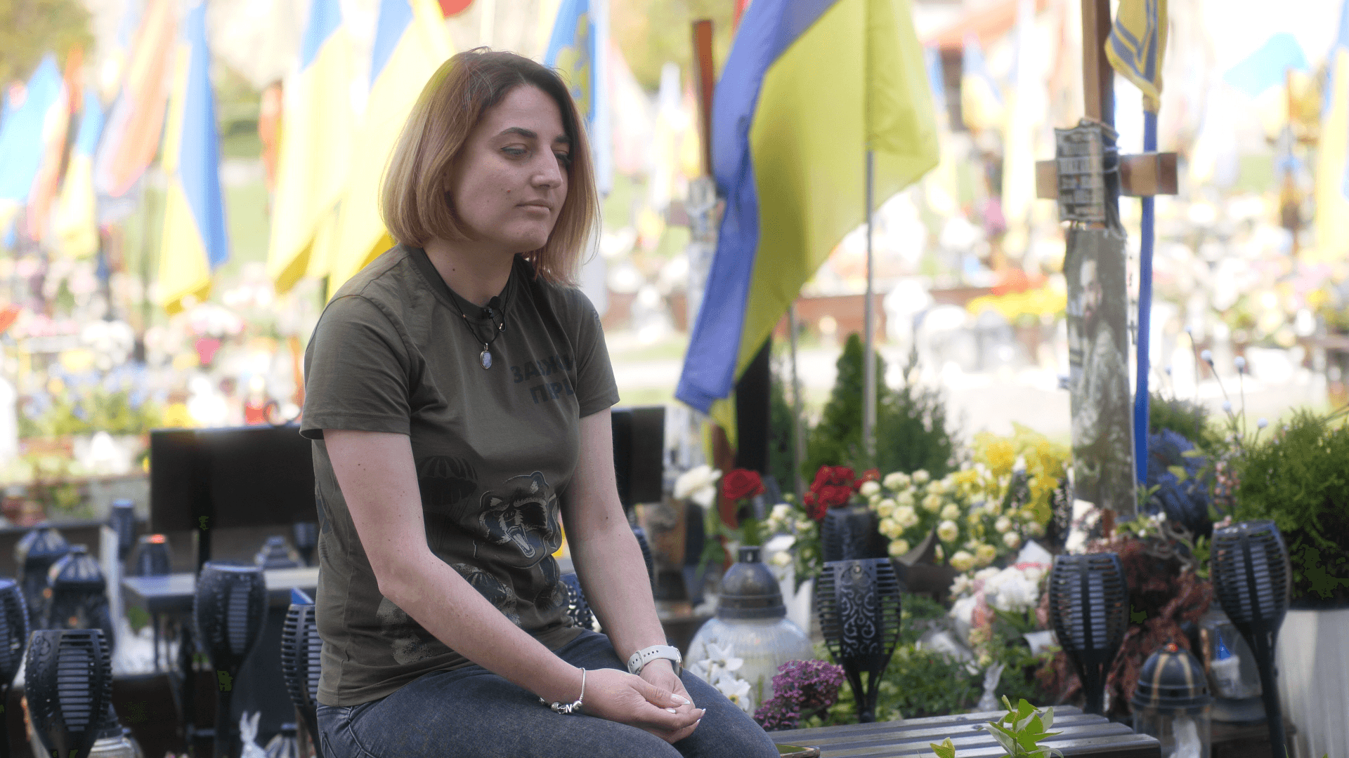 «Бачите? Я спілкуюся з ними через ці прапори: якщо вони рухаються, значить, хлопці мені відповідають. Вони завжди зі мною...» 32-річна Наталя Михайлишин-Кирич втратила на війні двох найдорожчих людей – брата і чоловіка. Майже щодня жінка приходить на їхні могили, щоб поговорити з ними. Доглядає ще одну могилу без фото, імені й дати – місце вічного спочинку невідомого Героя.