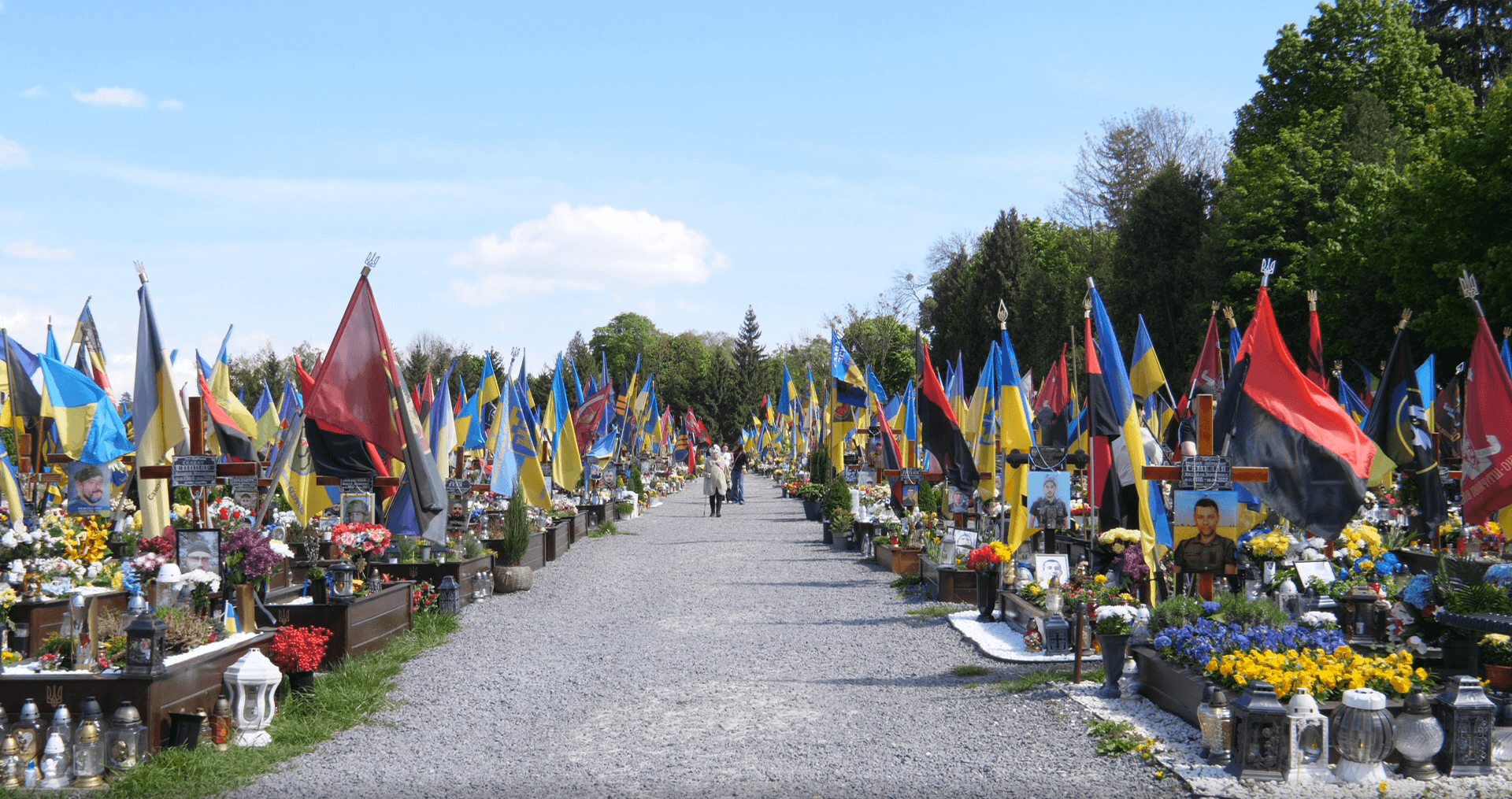 «Дякую вам, хлопці, що сьогодні така хороша погода. Це точно зробили ви», – каже Наталя, заходячи на кладовище. Жінка прямує до першої могили. Йде стежкою між двома великими рядами могил полеглих захисників і повертає праворуч.