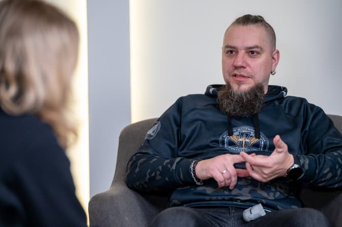 Андрію, перед нашою зустріччю я розповідала своїм дітям про тебе: що ти повернувся з війни, де пробув два роки, радилась із ними, з чого почати нашу розмову. Моя середульша донька просила запитати, як ти даєш собі раду тут, у цивільному житті.