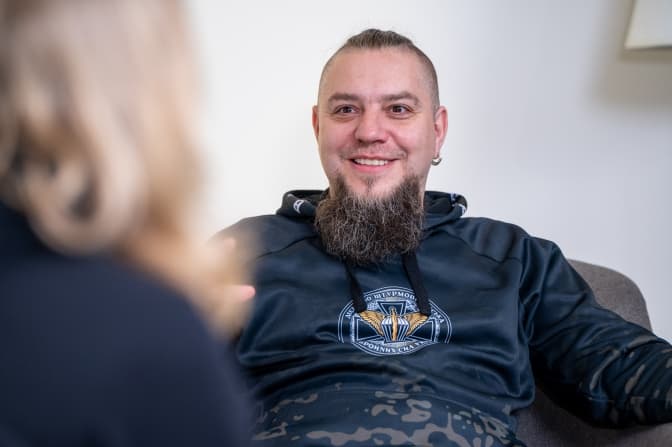 Там не настільки це розвинуте. Зараз лише починається. Завдяки нашому командиру в нас з'явилася група бойового стресу. Це декілька офіцерів, зазвичай служба МПЗ (морально-психологічного забезпечення), юристи або соціологи в цивільному житті. За 60–80 кілометрів від фронту вони створюють базу, куди забирають людей із гострим стресовим розладом, таких, наприклад, які кажуть: «Я нікуди більше не піду, навіщо мене взяли на війну?». Я як лікар постачав їх необхідними препаратами, з ними також може працювати військовий капелан. Там випробовують різні методи: хлопців можуть вивезти на риболовлю, покататися на конях чи до платних жінок. Їх запитують, у чому є потреба і чи стало легше. Це все, звичайно, на неофіційному рівні, але найперше спрямоване на те, щоб допомогти хлопцям вийти з цього піке.