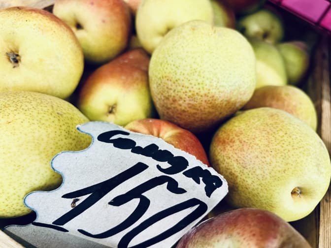 Яблука залишилися торішні, від 35 до 45 гривень за кілограм. Грушки також торішні, з Чернівців.