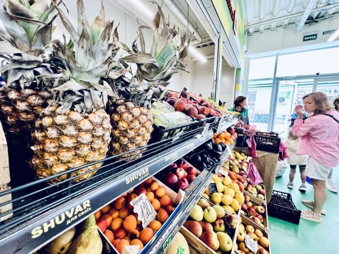До них ходять як постійні клієнти, так і нові. На прилавках фруктів та ягід до кольору до вибору. «Немає Херсона, Мелітополя... Почалася війна – почалися проблеми. Є товар закарпатський. Ціни ставлять які хочуть, бо вже нема тієї конкуренції», – пояснює продавчиня.