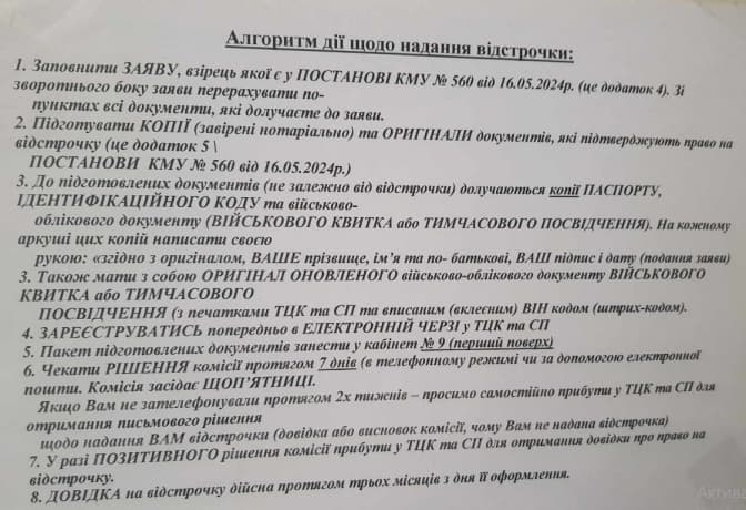 10. Якщо вам не зателефонували протягом двох тижнів, потрібно прибути в ТЦК та СП для отримання письмового рішення про надання відстрочки або висновку комісії, чому ця відстрочка не надана.