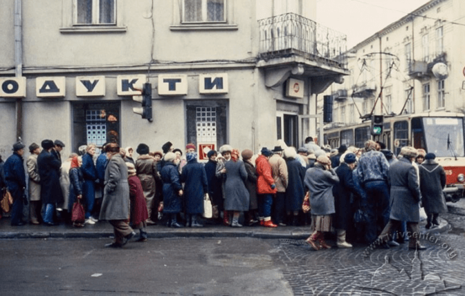 1991 рік запам’ятався сумно відомим «обміном Павлова» – о 21-00 оголосили про обмін 50 і 100 рубльових купюр лише до 12 години ночі, і за цей час зареєстровано близько сотні інфарктів лише у Львові. З наступного дня можна було міняти гроші тільки на роботі. Там це вирішували комісії трудових колективів. В ощадкасах частково заморозили внески і дозволяють знімати тільки 500 рублів на місяць. Середня зарплата в країні – 212 рублів, і близько третини мешканців уже колишнього СРСР перебуває за межею бідності. 2 січня 1992 року відпускають ціни, і тепер нижче прожиткового мінімуму опинилися від 50 до 90 відсотків населення. У квітні львів’ян повідомили про нові ціни. Хліб: замість 20 коп. - 48. М'ясо: замість 1,9 крб. - 6-7. Молоко: замість 24 коп. - 50. Цукор: замість 78 коп. - 2 крб. А у травні обласна рада встановила норми відпуску товарів. У травні на один талон відпускали 200 г масла, 3 коробки сірників, 0,5 л горілки. На поминки чи весілля талони на горілку збирали по всіх сусідах і знайомих.