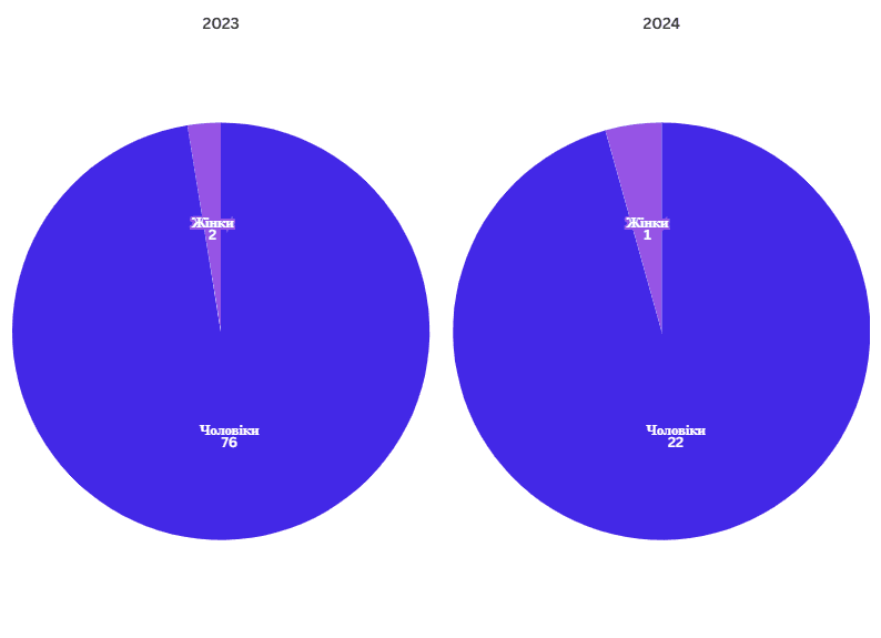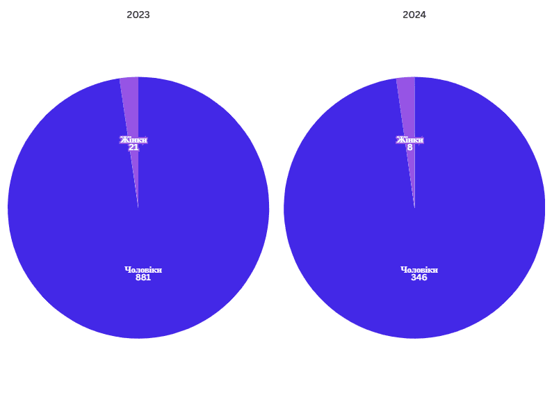 У 2024 році на державне замовлення вступили 161 чоловік та 12 жінок, тоді як у 2023-му 70 чоловіків і 29 жінок. Тобто кількість чоловіків зросла більш ніж удвічі, а кількість жінок зменшилася.