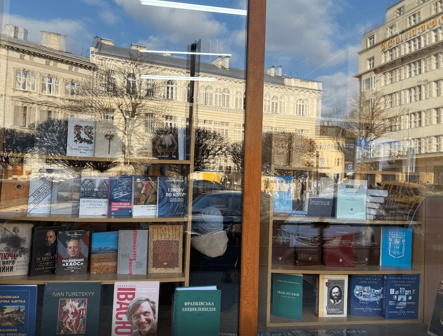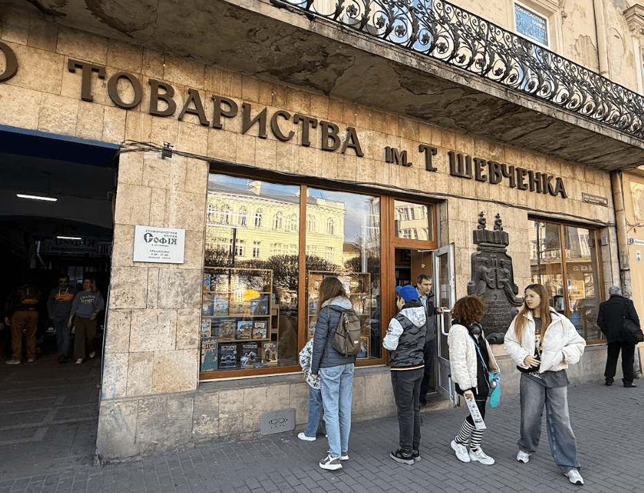 На проспекті Шевченка, 8 людно. Часом із юрби вигулькують декілька людей і прямують до дверей книгарні Наукового товариства імені Шевченка. Перед вітринами скупчується молодь.