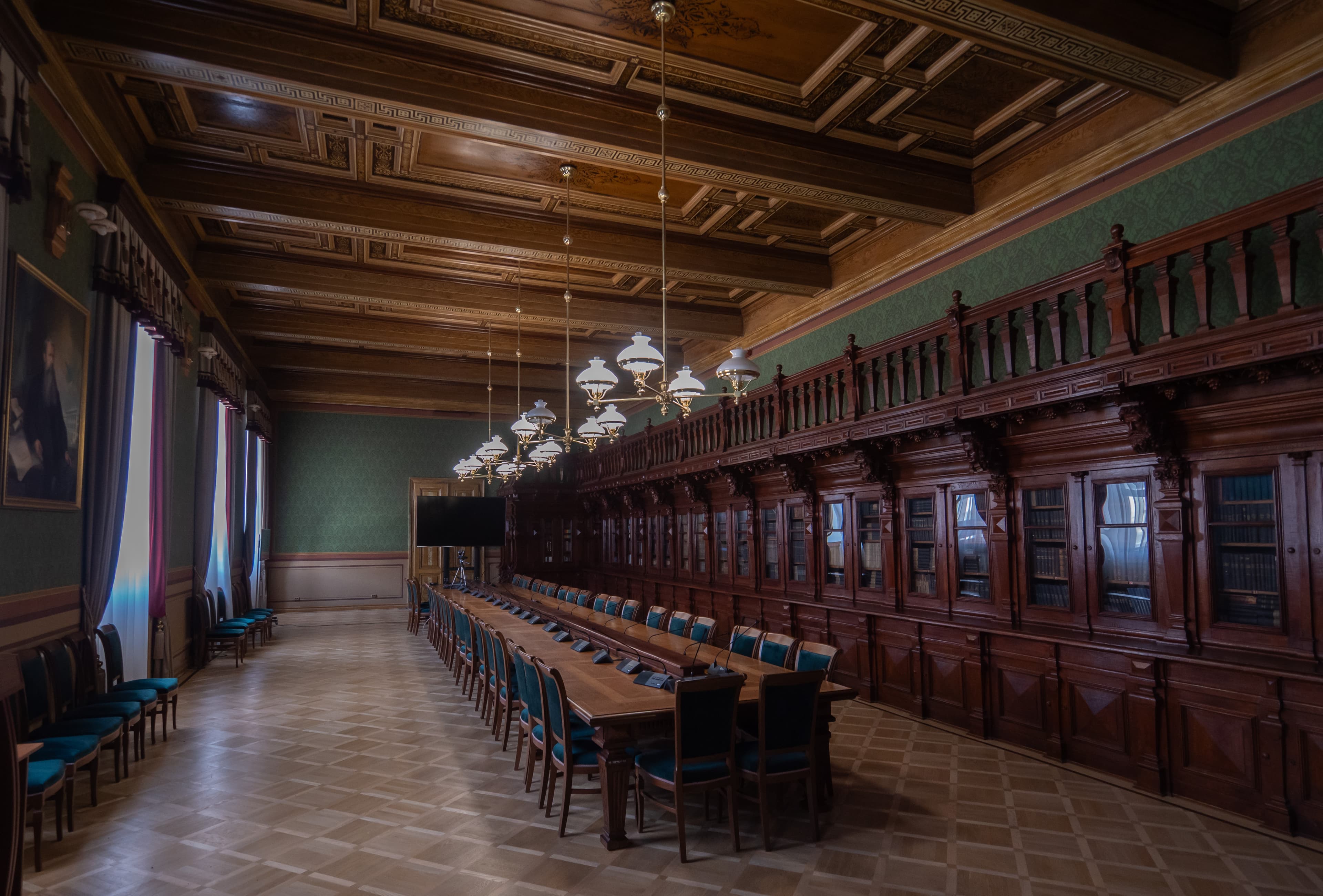 Ще один несподіваний факт. Впродовж тривалого часу засідання великого сенату відбувалося стоячи. В залі не було стільців, і засідання були короткі. Чому? Виявляється, це пов’язано із тим, що на місці сучасного тризубу висів портрет Франца Йосипа І, а у присутності імператора його піддані не мали права сидіти.