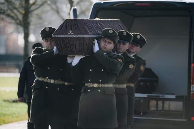 Кортеж із тілами прибуває до меморіалу.