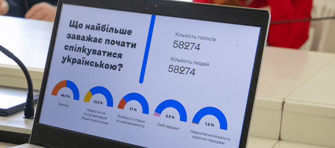 За результатами опитування серед киян, яке провели у застосунку «Київ Цифровий» у 2023 році, з’ясувалося, що 33,3% опитаних перейшли на українську мову спілкування саме під час війни.