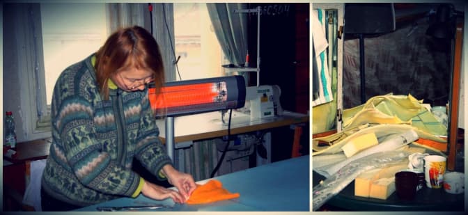 А ось тут якраз народжуються костюми. Пошивний цех, а на фото – робота над створенням нових образів.