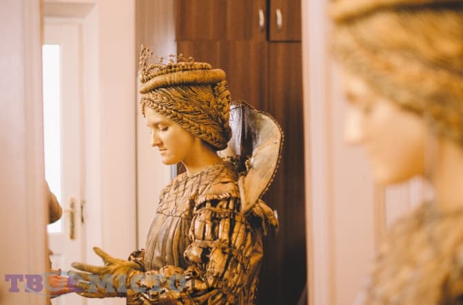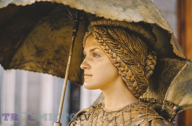 Важливо, щоб костюм статуї виглядав дуже реалістично та усі деталі були тверді та тримали форму. Для літа є сукні з легшого матеріалу.