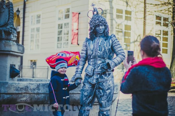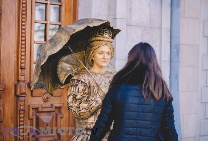 «Живою скульптурою може бути кожен. І журналіст, і редактор, і економіст. Навіть депутат. Трішки артистичності, бажання працювати й золотого гриму — і ти вже готовий викликати усмішки на обличчях людей», - каже Петро.