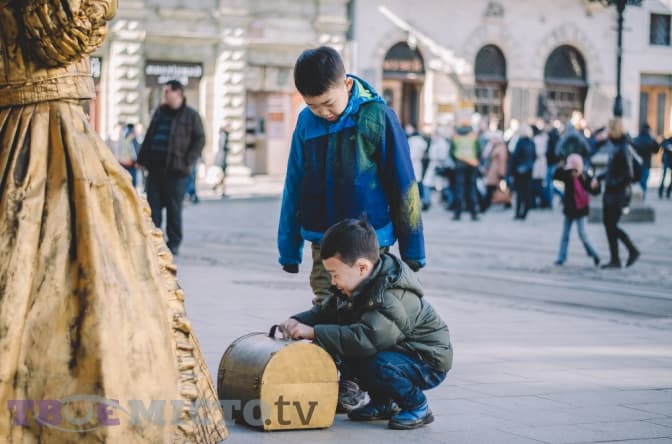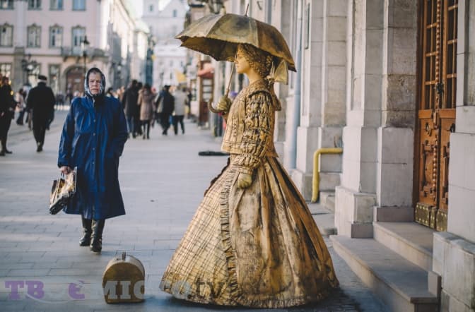 Уже у першу годину з Катею сфотографувалися 30 туристів, які не забували лишати купюри у скриньці. Золотава королева заворожує дітей, а ось львівські панянки до дівчини скептичні – час від часу кидають невтішні фрази про «ведуться на все, що завгодно» та гордовито йдуть своєю дорогою.