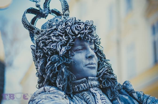 Жива скульптура не може розмовляти з людьми. Тільки плавно рухатися, усміхатися, при цьому не показувати зуби.