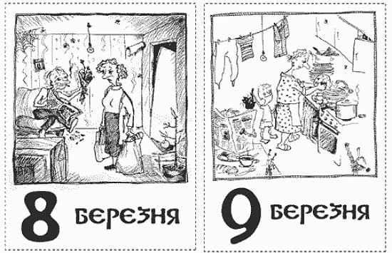 Мені здається, українські жінки дуже себе недооцінюють. Українки не наважуються навіть мріяти про щось більше, як один-єдиний день винагороди за всю свою невтомну працю, свої таланти, свої досягнення… Я аж ніяк не закликаю позбавити жінок вітань, подарунків і виявів прихильності та визнання. Навпаки: пропоную жінкам домагатися, щоб усе це – повагу, турботу, любов – вони отримували і відчували постійно, щодня. І лише один день на рік – 8 березня, у Міжнародний день прав жінок – згадували про проблеми і несправедливість, із якими стикаються у своєму житті, у родинах і на роботі.