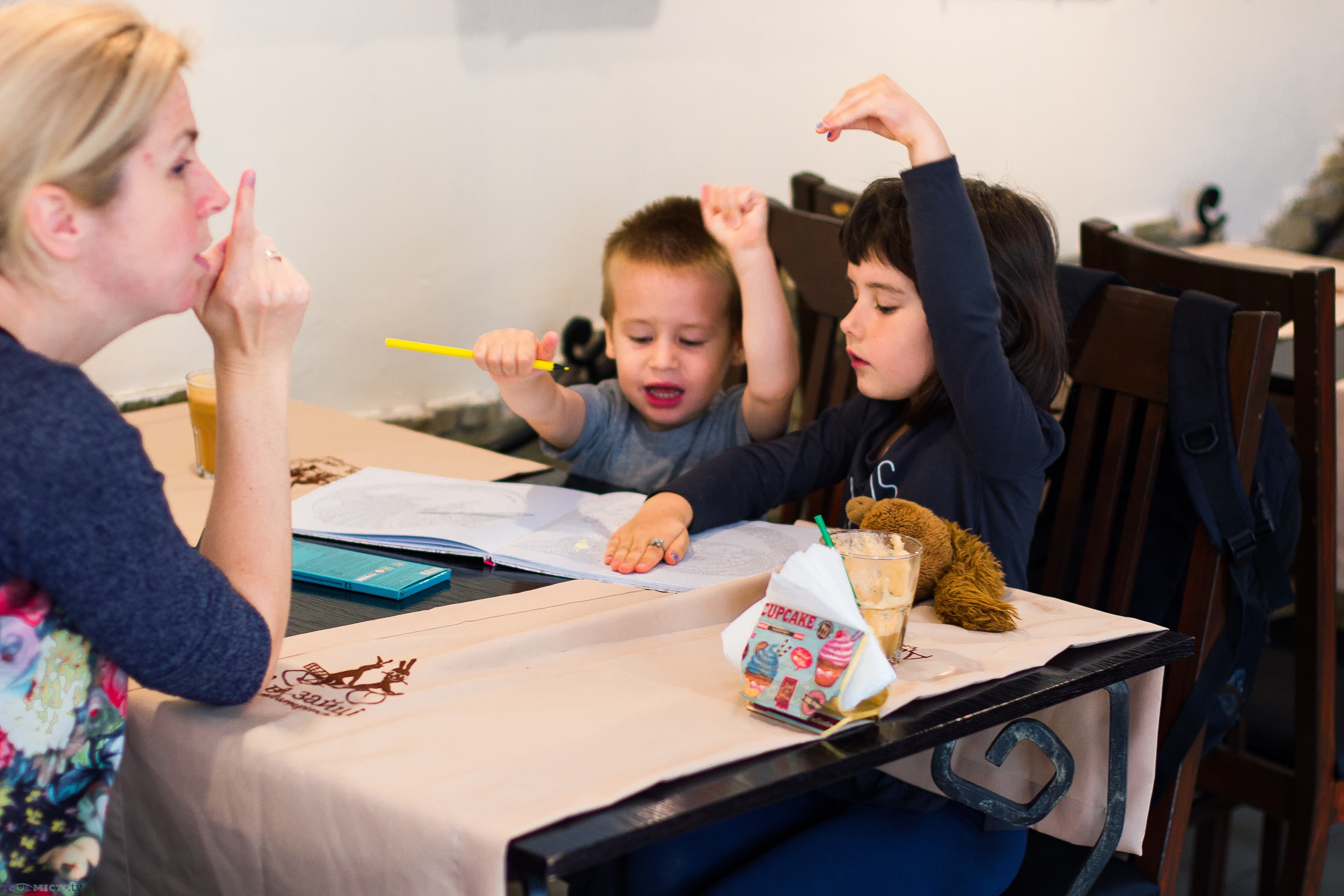 Поруч з нами п’ють фреш та граються двоє дітлахів. Помітно, що господарі тішаться таким відвідувачам. Розповідають, що мають ще одну традицію – вечір друзів. Раніше збирались щопятниці, тепер ж «Два зайці» запрошують усіх у четвер поспілкуватись, зіграти в настільні ігри, познайомитись з пригодницьким рухом «Ґра» (https://www.facebook.com/gra.ruh/). Петро каже, що ідея такого простору для спілкування виникла з їхнього з Наталею болючого місця – нове незнайоме місто, відсутність друзів, елементарна потреба у зустрічах з людьми.