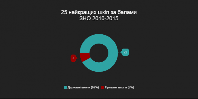 До топ-25 львівських шкіл у цьому рейтингу потрапили лише три приватні: Львівська українська приватна гімназія, школа-гімназія Шептицьких та школа-гімназія «Відродження». Перша з них до 2015 року п’ять років поспіль посідала четверте місце в рейтингу, поступаючись лише трьом державним навчальним закладам – Фізико-математичному ліцею, Академічній гімназії при Львівській політехніці та Класичній гімназії при університеті імені Франка. Школа Шептицьких до 2014 року посідала 17 місце в рейтингу, проте 2015-го на ЗНО з української випускники підняли її на восьму сходинку. Школа «Відродження», яка до минулого року посідала 12 місце завдяки добрим результатам із історії та географії, посіла на ЗНО з української 39 місце.