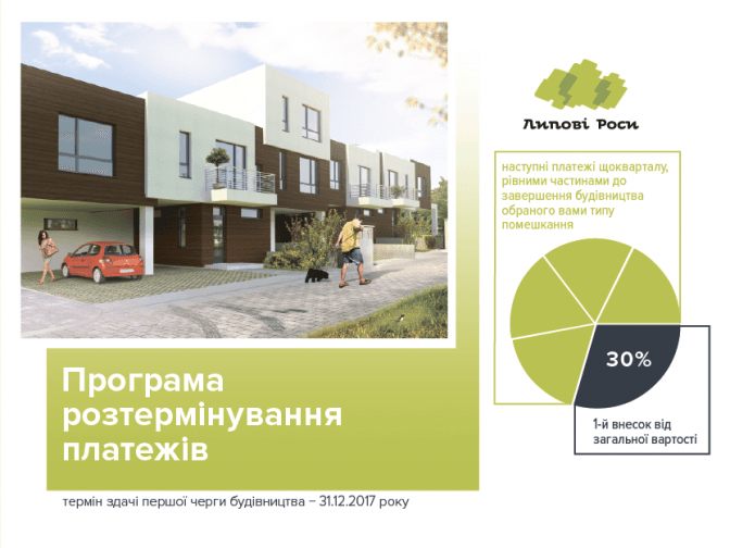 Вартість будинків у житловому комплексі “Липові роси” коливається в межах 18-18,9 тис. грн. за квадратний метр - залежно від типу будинку. При купівлі помешкання “Нова оселя” пропонує послугу розтермінування платежів. Перший внесок має становити не менше 30% від загальної вартості, вказаної в договорі. Решта суми ділиться на однакові платежі, які необхідно вносити щокварталу до завершення будівництва помешкання обраного типу. Зокрема, термін здачі першої черги - уже 31.12.2017 року.